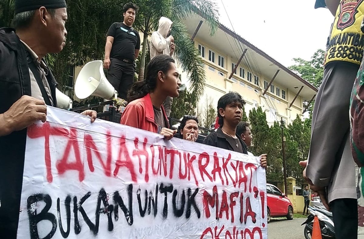 Puluhan massa menuntut kejelasan proses penerbitan sertifikat lahan seluas 27 hektar yang dinilai tidak kunjung diterbitkan oleh BPN Depok meski miliki alas hukum kuat dati Surat Keputusan Kepala Inspeksi Agraria (SK Kinag) No. L.R. 36/D/VIII/54/72 tertanggal 23 Desember 1972.